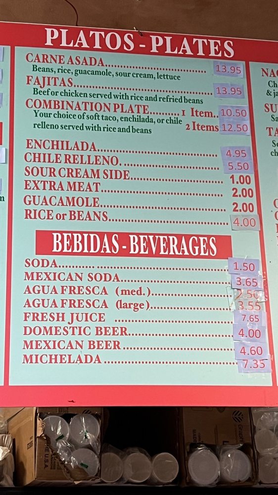 Pick : Enchilada (Red or Green Sauce), Taco (Choice of Meat), Chile Relleno, Tamale (Chicken or Pork). Served w/ Refried Beans and Rice or Fideos.